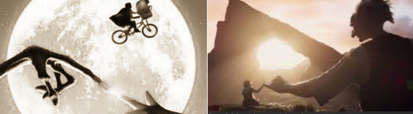 - They fly in soaring leaps against the moonlit blue sky recalling shots from E.T. Transcending reality by means of flight to enchanted lands is standard Spielberg/WOO fare.