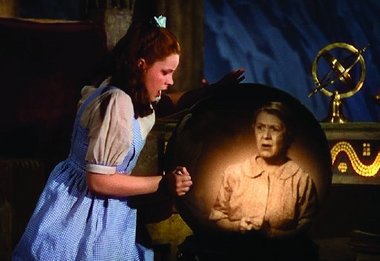 - Remember Dorothy locked in the witch’s castle with the hourglass sand slipping away? She is afraid and cries for help. Suddenly Auntie Em appears in the crystal ball. She is calling for Dorothy but cannot quite seem to hear