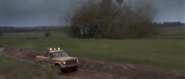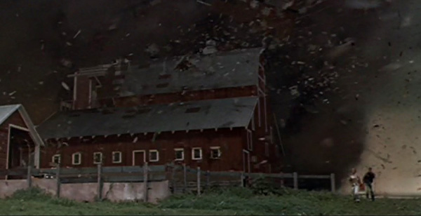 See Indiana Jones and the Last Crusade, Schindler’s List, Jaws, 1941, Joe vs. the Volcano, Inner Space, Jurassic Park, Used Cars, Sugarland Express, Poltergeist for other homages to the red and yellow commercial for Technicolor devised by WOO. - Also Jo and Bill defy Lou Jean’s opinion that ‘it don’t do no good runnin from a tornado‘ by doing exactly that! See Minority Report, War Horse, WOO for references to “Run, Toto, run”.